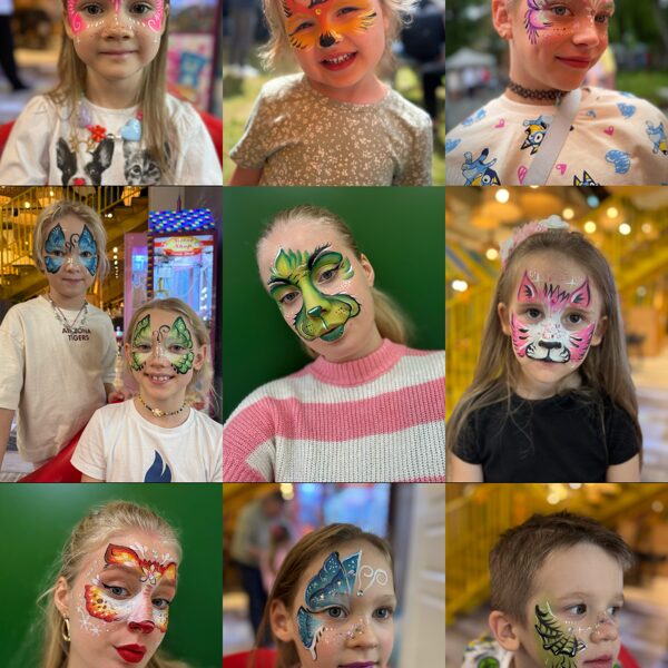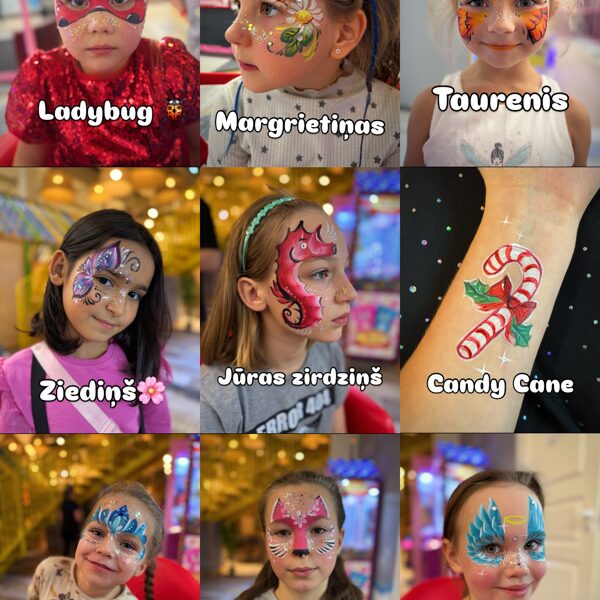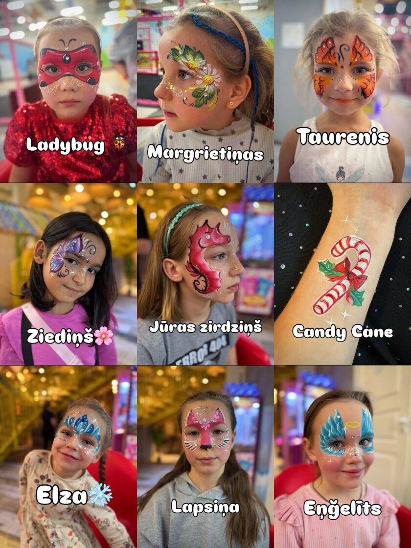 Krāsaina un aizraujoša aktivitāte bērnu ballītēm, ģimenes pasākumiem, skolu svētkiem un publiskiem pasākumiem. Dizainus iespējams pielāgot pasākuma tēmai.