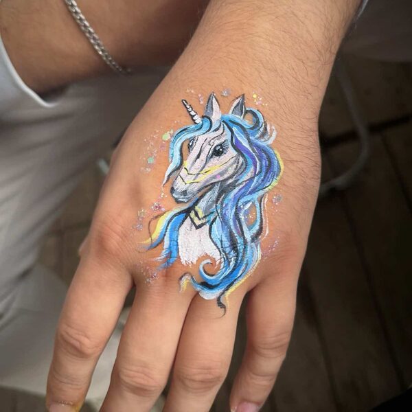 - tiek izmantotas profesionālas sejas apgleznošanas krāsas;